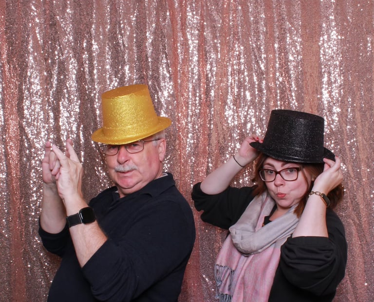 We have two photobooth pods which are stood on selfie stands which enables us to offer the photo booth in any size venue and have the option for different style backdrops. Unlike other companies where you can only fit a couple of people at a time, we can fit many more guests which is perfect for groups to laugh and have a joke together.