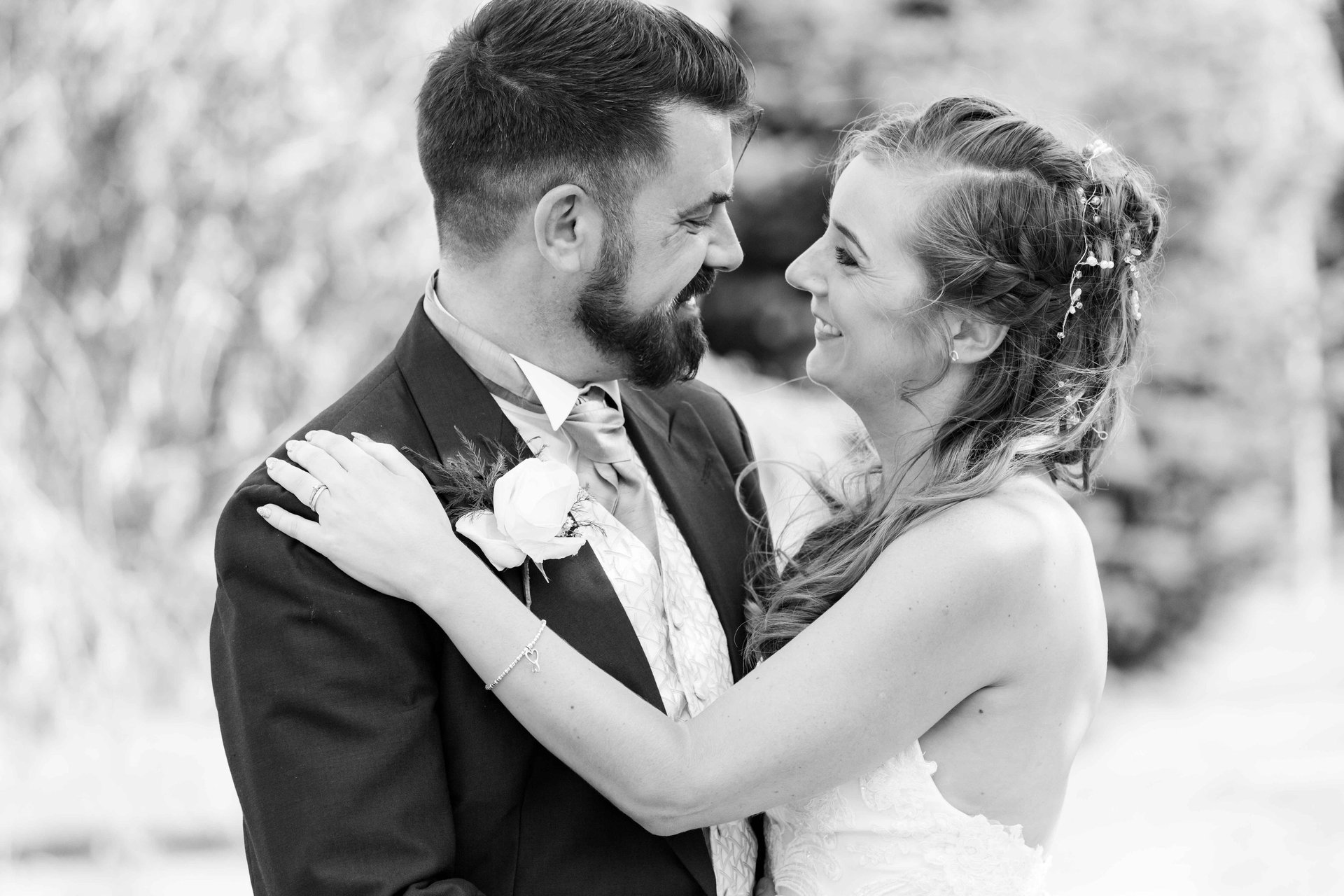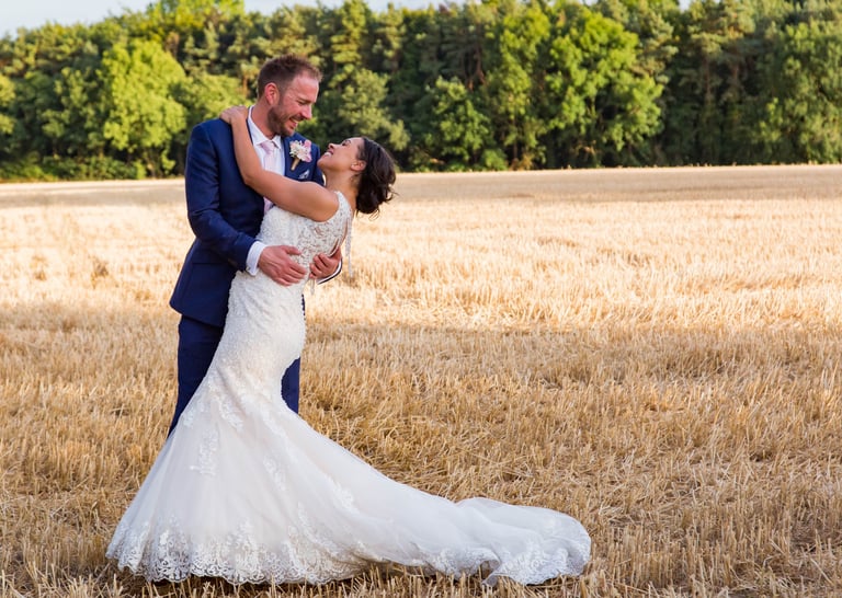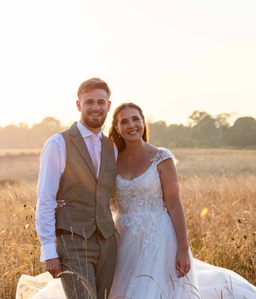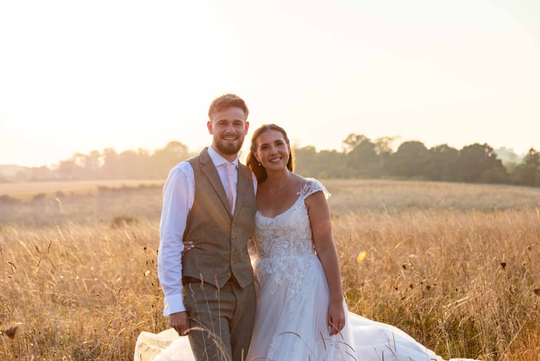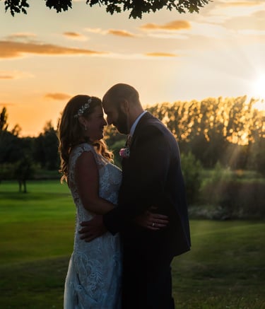 Sunset light wrapping the couple in warmth.